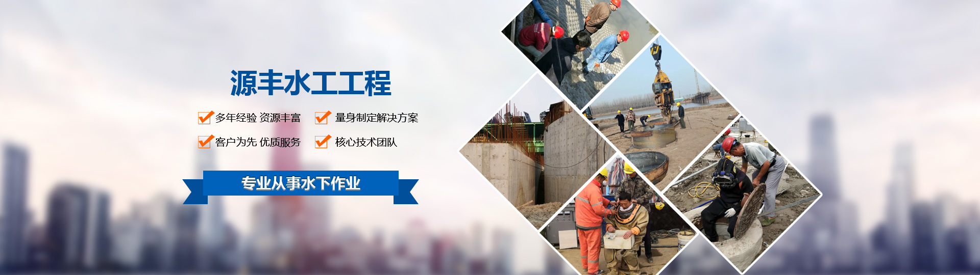 鹽城源豐水工工程有限公司是一家專業(yè)從事水下作業(yè)的股份制企業(yè),公司多年以來,堅(jiān)持以人為本,誠信經(jīng)營,憑借質(zhì)量、效率、信譽(yù)的作風(fēng)贏得客戶的信賴和贊譽(yù)。
